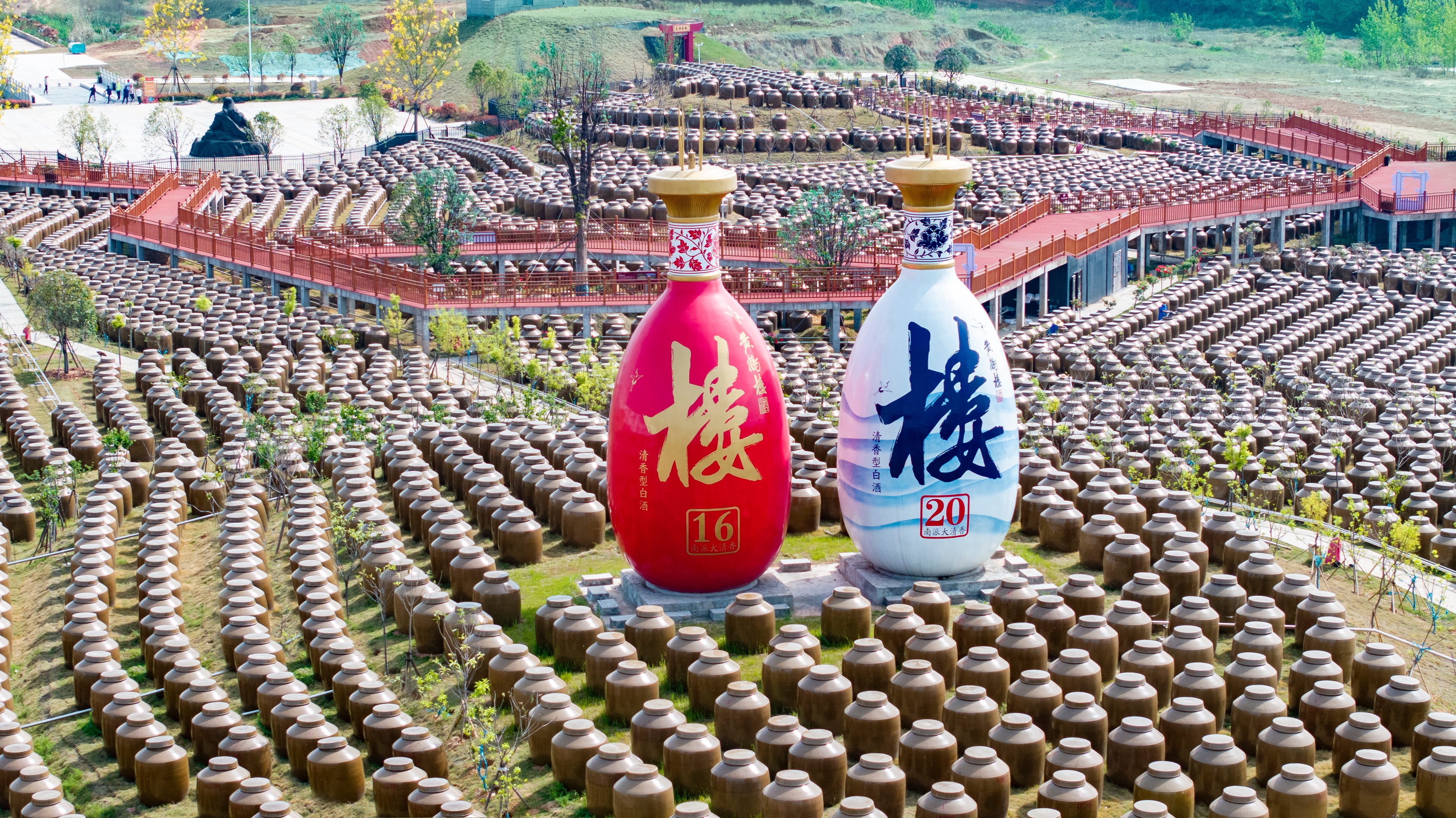 "万吨陶坛林"是黄鹤楼酒智能酿造园的一道独特风景。室外陶坛林用于储存原酒。在4.1万平米的空地上摆放近一万个陶坛,每个陶坛自重600多斤,1.55米高,埋深50-70cm,陶坛口距离地面最多1米,可储存1.3吨原酒。
