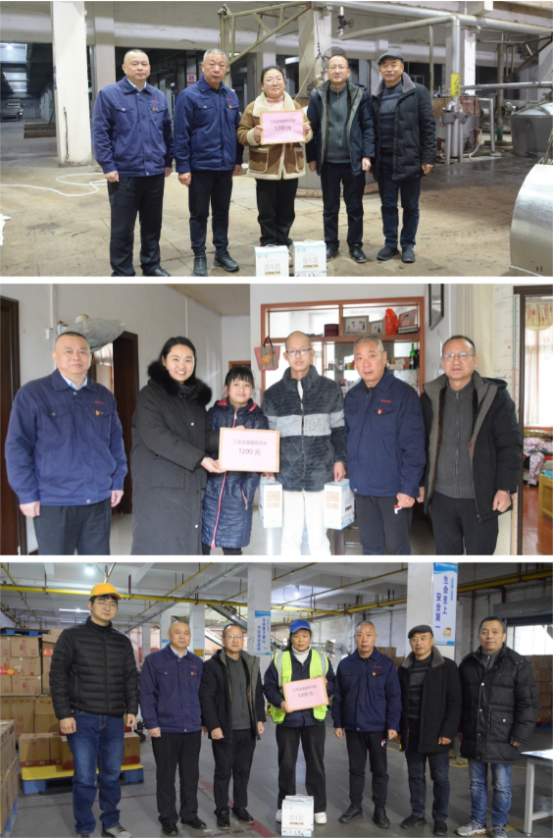 近日,黄鹤楼酒业党委委员、纪委书记、副总经理、工会主席魏国,党委委员、咸宁子公司总经理谢毅,酒体设计总工程师李久洪,酿造管理中心总监助理史健一行走访慰问咸宁子公司困难职工。