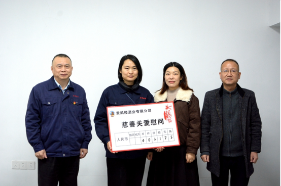 12月24日,黄鹤楼酒业党委委员、咸宁子公司总经理谢毅,酒体设计总工程师、咸宁工会主席李久洪一行慰问困难员工王慧并送上慰问金。